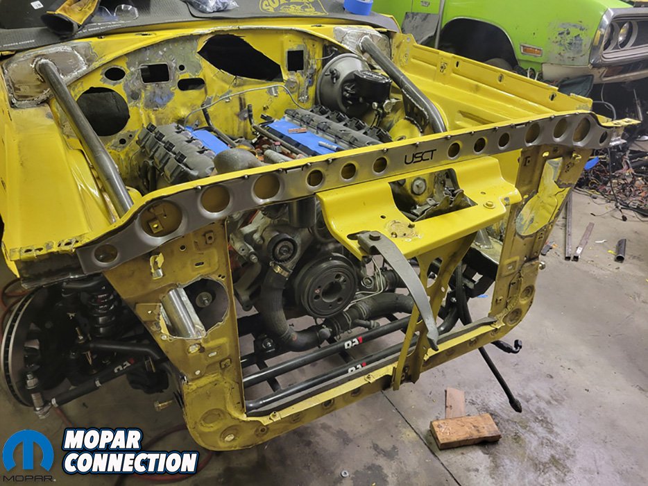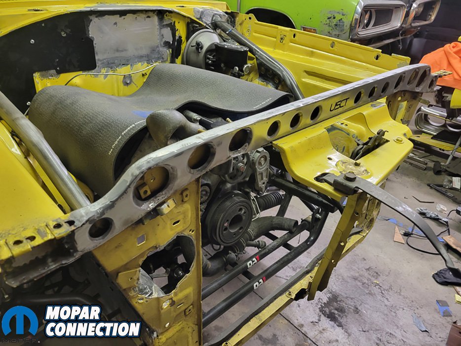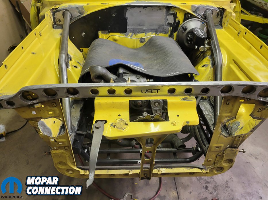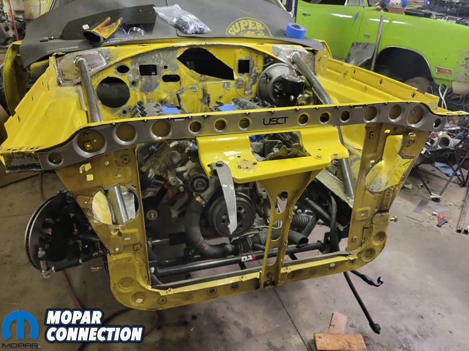 The Super Bee was already getting some engine bay modifications such as triangulating the frame rails to fire wall and relocating the wiper motor under the dash, so it was the perfect time to install the front core support brace.