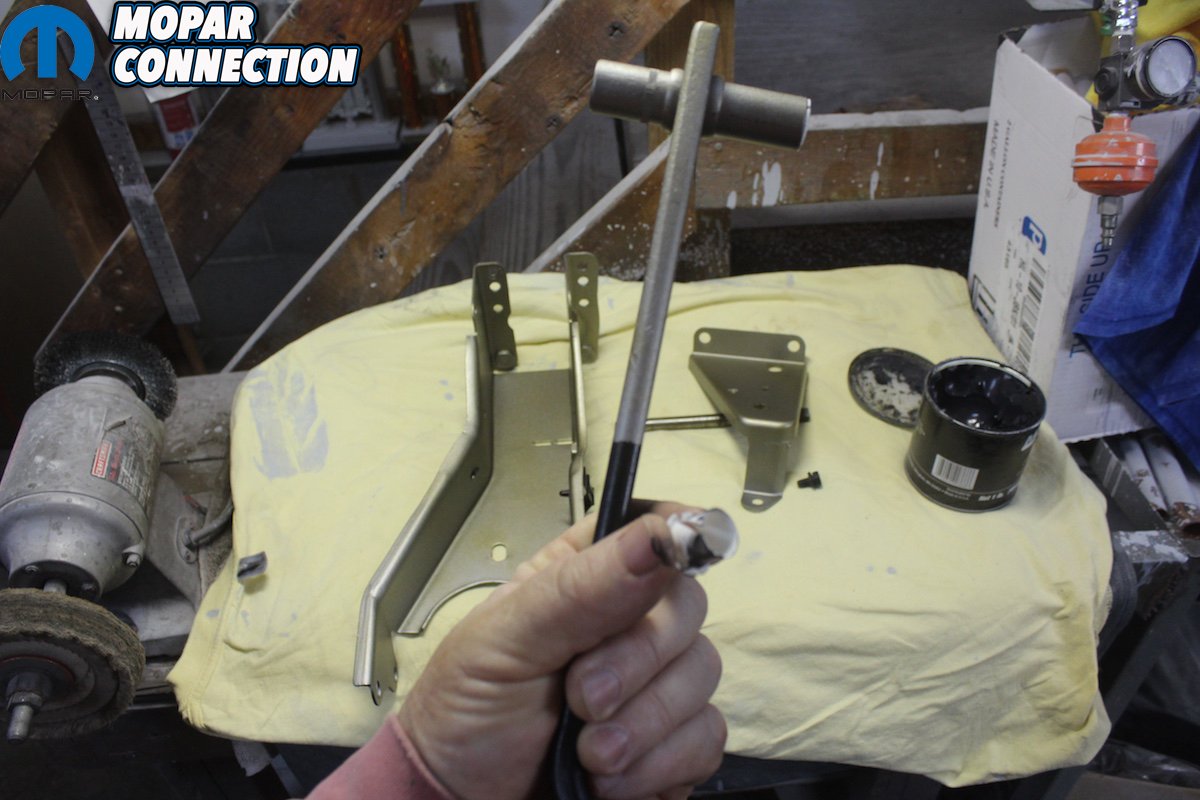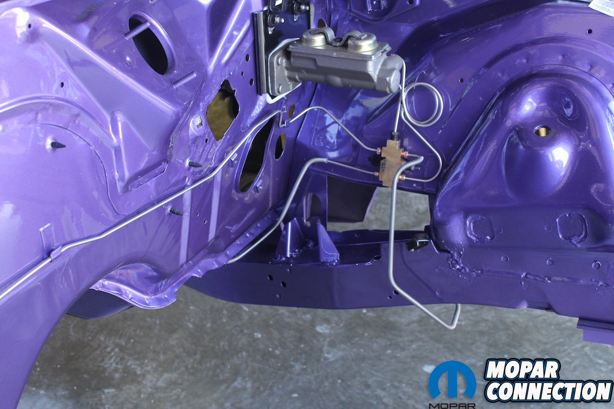 We begin by focusing on the pedals assembly, Master cylinder, proportioning valve, and brake lines. As noted in our last article, “Back in Black, Front in Black, and Wheel Wells Too,” these were all on the car before it was undercoated. Since the “Comeback Cuda” was originally an automatic we had to find a set of 4-speed pedals. We were able to get a great set by looking in the “For Sale” section on Moparts.com. One of our daily places to visit on the web.