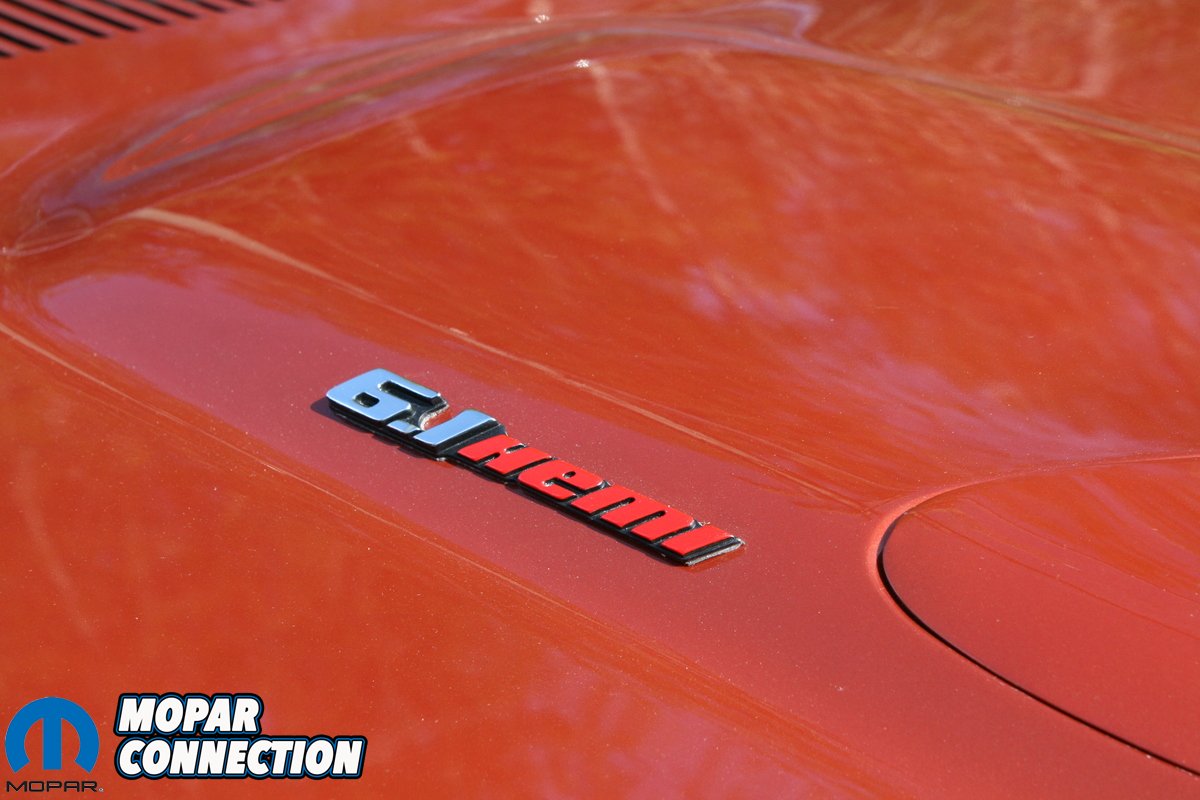 Barnabas tells us, “While I was doing all of this metal work, the plan for the final finished product slowly evolved. My first idea was to change the original 4-speed to a Tremec 5-speed for better highway drivability. The biggest change came when I Iearned more about the 3rd generation Hemi engines. I asked myself, rather than a carbureted small block, why not a modern EFI Hemi with more power? Around this time, modern Hemis in old Mopars were still a new concept. After that came a bunch of other more minor ideas to bring the car up to more modern standards, but at the same time preserve as much of the original looks as possible. With this new direction the work continued.” Once all of the metal work was done, the body panels and parts were test fitted. Many of the parts required various adjustments to make gaps better than 1970 production tolerances. Having learned quite a bit about the factory hinges during the restoration of the Challenger, Barnabas carefully rebuilt the door and hood hinges with improvements. A lot of effort was put into the doors, so they would close nicely without the thump typical on E-bodies while using a pair of NOS door latches.
