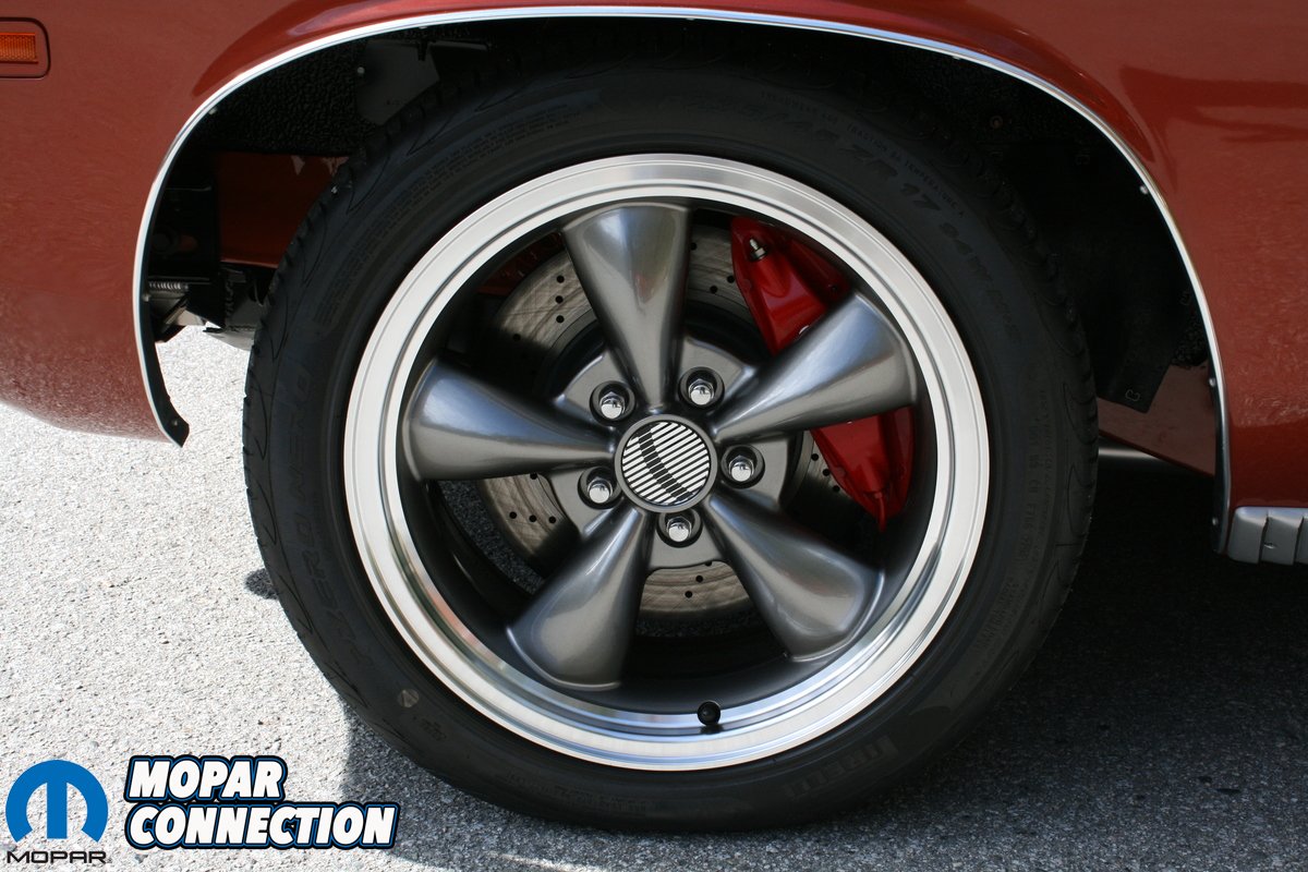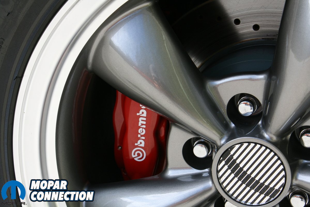 The brakes are also completely upgraded for premium stopping power. The front brakes are a kit sourced from AR Engineering and feature 13” rotors squeezed tight by 4-piston Brembo calipers. “For the rear, I did not find any readily available brake kit that met all of my criteria like the parking brake in the rotor hat, lightweight aluminum calipers and tapered adjustable axle bearings retained. That being said, I designed and machined my own parts, loosely based on the factory 1974-1975 Imperial factory rear disc brakes. I used the Imperial parking brake assembly and machined some custom brackets to mount 4-piston Brembo calipers, same as those found on the rear of the older SRT8 products and fit 12.6” rotors. This way the brakes look similar in the front and rear, and the piston sizing is very close to ideal”, says Barnabas. The wheels are those used on later model late 2000’s Mustangs; 17×8 in the front and 17×9 in the rear. They are wrapped in Pirelli P-zero tires; 235/45-17 up front and 275/40-17 out back.