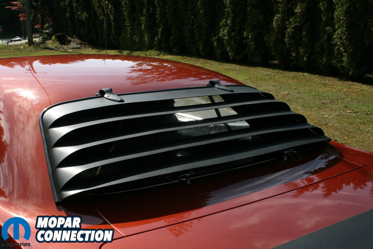 A Milodon oil pan, TTI motor mounts and headers were used to make the engine fit nicely into the E-body. A full custom made mandrel bent stainless steel exhaust system was fabricated by M-tech Automotive in Port Coquitlam, B.C. A reproduction fuel tank was cut open to install proper baffles and in-tank pump needed for the EFI system. The Hemi is kept cool by a custom aluminum radiator. The engine bay showcases quite a few custom fabricated pieces by Barnabas such as the Pentastar radiator cap and battery tie-down. To control everything, a FAST XFI engine management system was installed under the dash. Barnabas tells us this system is way more flexible than the factory style computer as all of the parameters are fully adjustable using a laptop. The wiring was a big job but fairly straight forward. While doing the engine wiring, a lot of other electrical upgrades were also added such as all major loads switch through relays and upgraded wiring from the alternator to the battery (a common problem area).