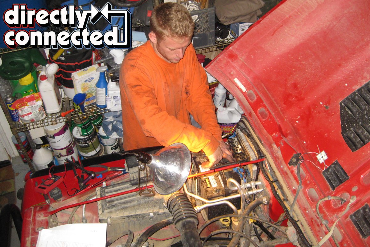 Above left: Once the nuts and bolts were tightened attention was turned to the electrical work. The AW4 is electronically controlled and as such a wiring harness needs to made to connect the Cherokee transmission harness with the TJ’s electronics. Above center and right: Armed with a soldering gun, multimeter, and a razor blade, wires on the stock ECU were exposed so the Cherokee transmission wires could be grafted in.