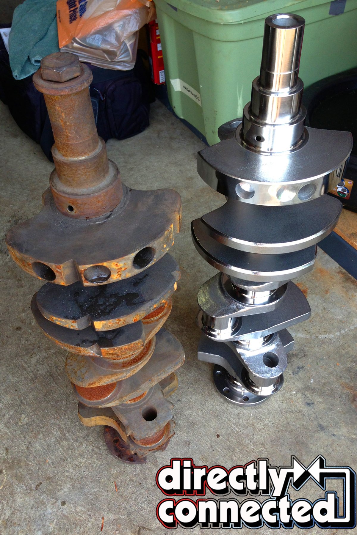 Above left: A comparison (although an unfair one) of a stock 3.75-inch factory 440 crank and Eagle’s gorgeous 4.500-inch stroker Hemi crank (yes, an eight-bolt flange). Above right: At Shacklett Automotive Machine, the crank was carefully weighed and balanced.