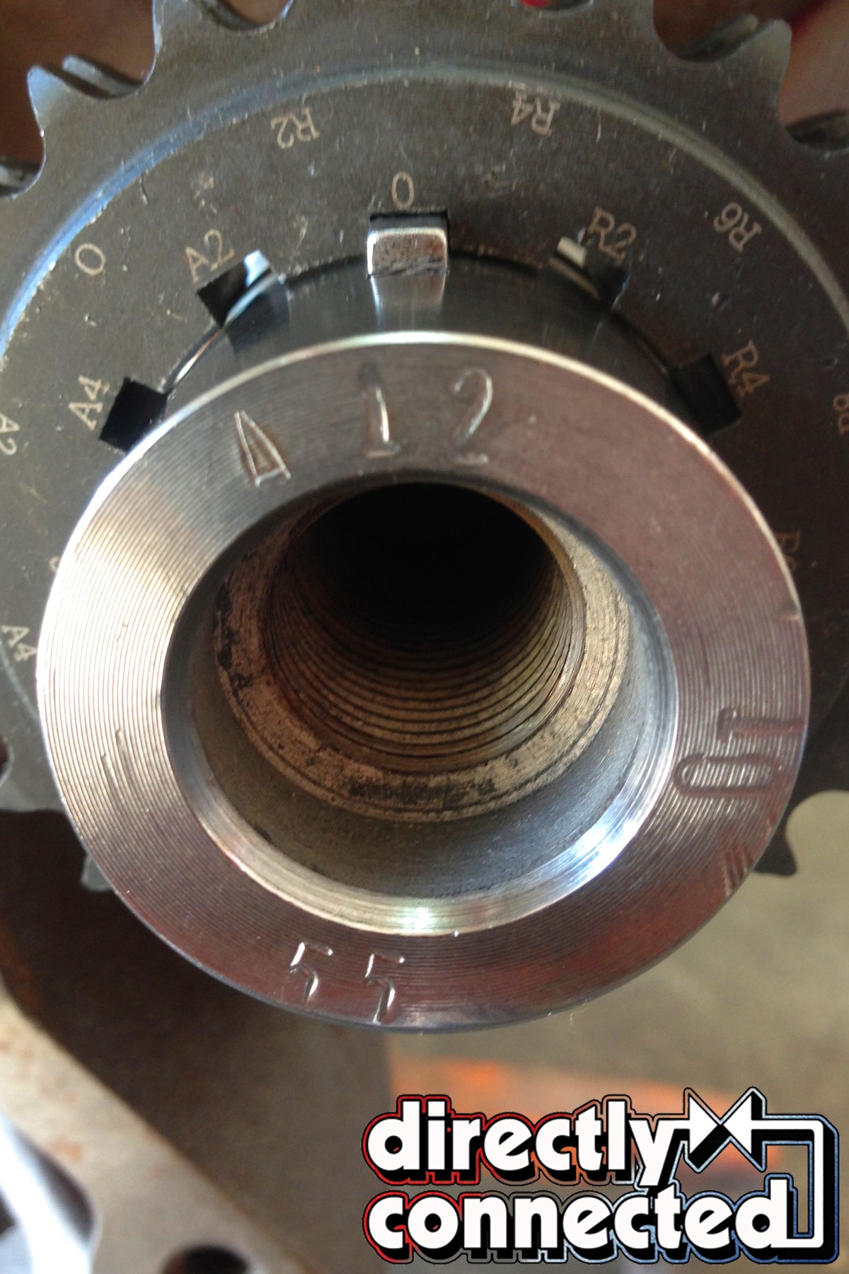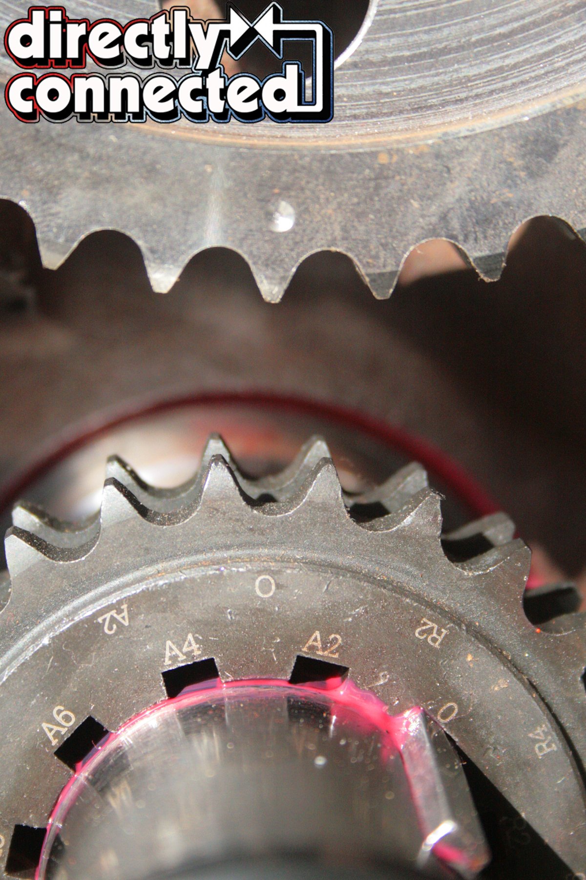 Above left: The Eagle crank key way. Above center left: The adjustable settings on the COMP dual-chain timing set. Above center right: The timing gear fully installed. Above right: The timing gear and cam timing gear aligned zero-to-zero.