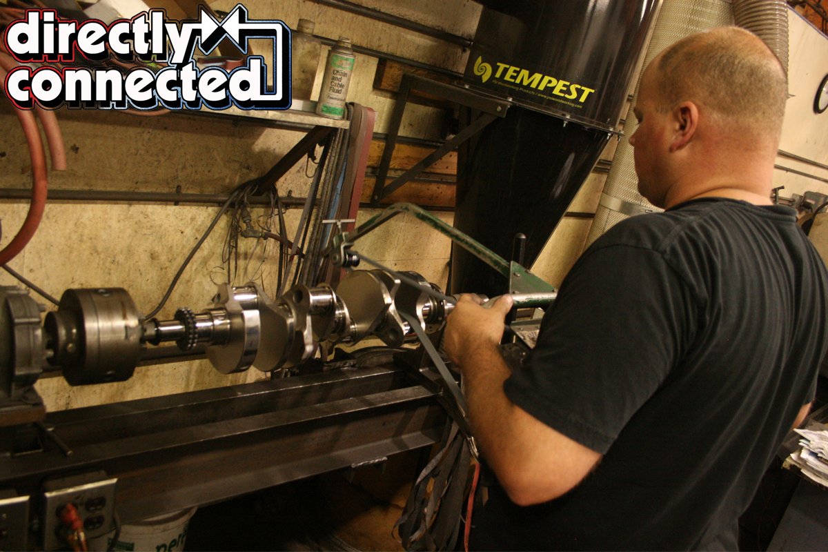 Above left: Shacklett’s digital balancer is sensitive to the slightest harmonic. Above right: a final polish is given to the journals and radii.