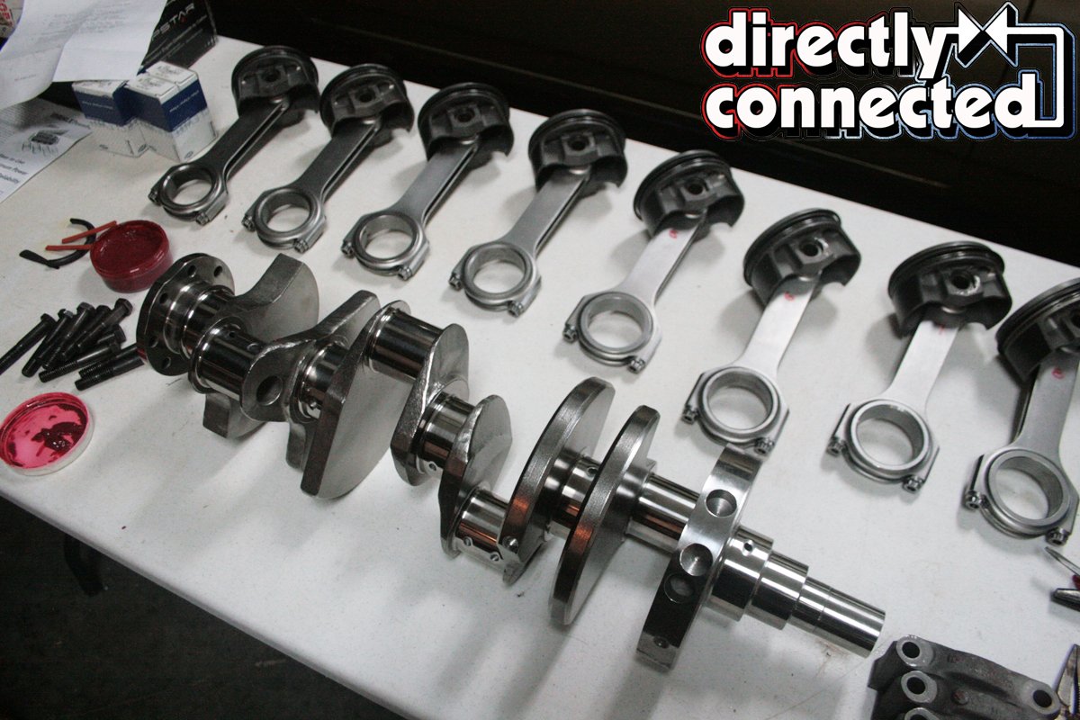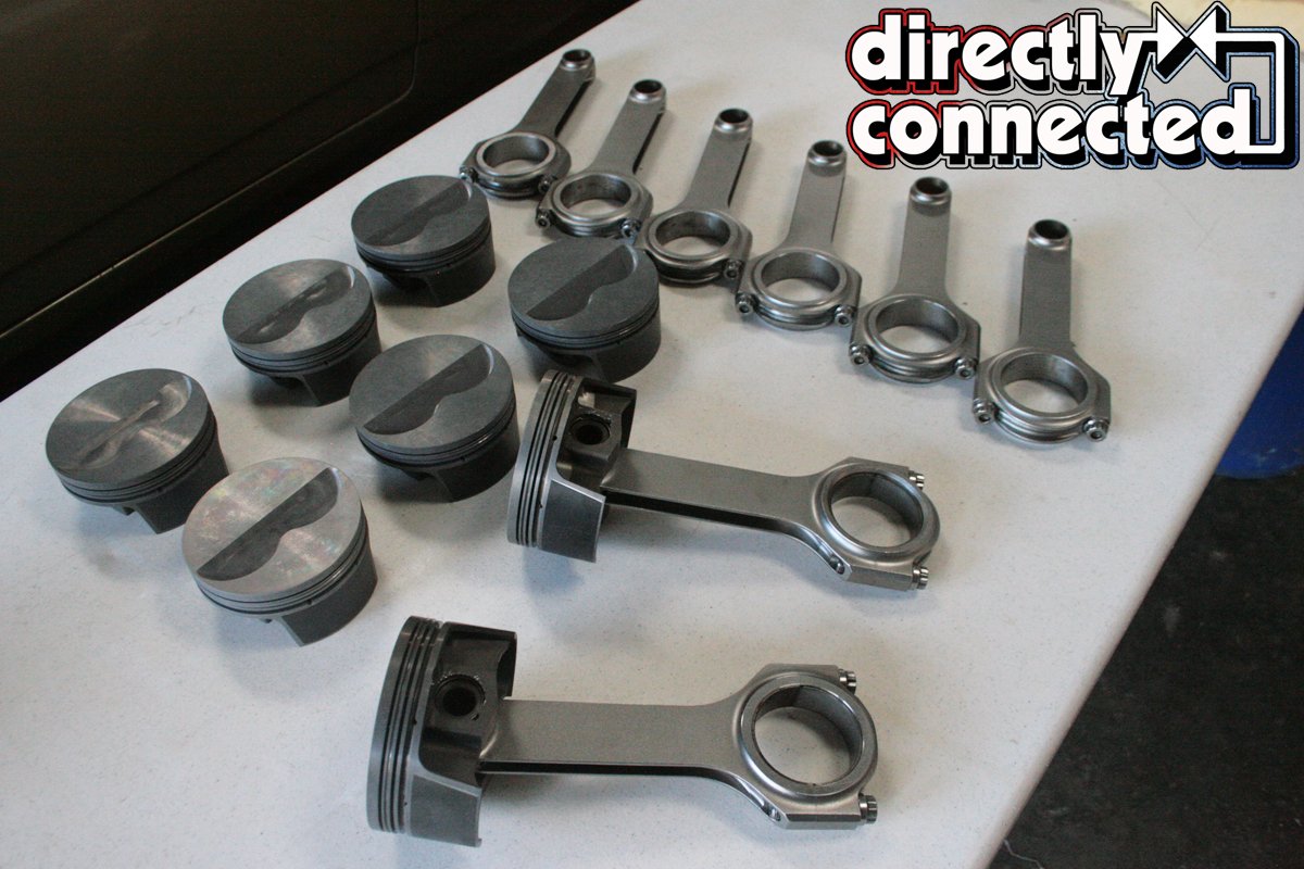 Under Eagle’s direction, we also acquired a set of MAHLE Motorsports Power Pak -8.0cc forged flat top pistons. Featuring the brand’s proprietary Grafal anti-friction coating on the skirts and phosphate-coating to reduce micro-welding and pin galling, we also picked up a set of MAHLE’s performance rings for maximized ring-to-piston sealing, wrist pins and locks. With all of our parts on hand, Knights was able to notch the outermost lower lip of each cylinder to clear our crank and rods combination.