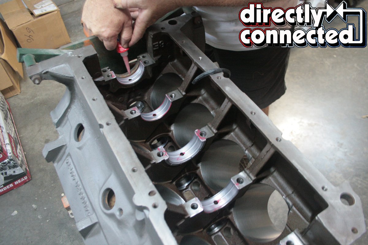 We opted to reuse the factory main caps bolts as the Chrysler Grade 8 bolts were still in remarkable shape. With more assembly lube on the Clevite bearings, we tapped each cap with a rubber mallet to properly seat them before applying some ARP moly to the top threads prior to hand-tightening each bolt.