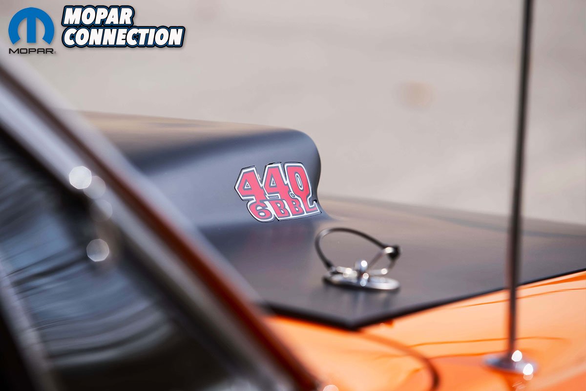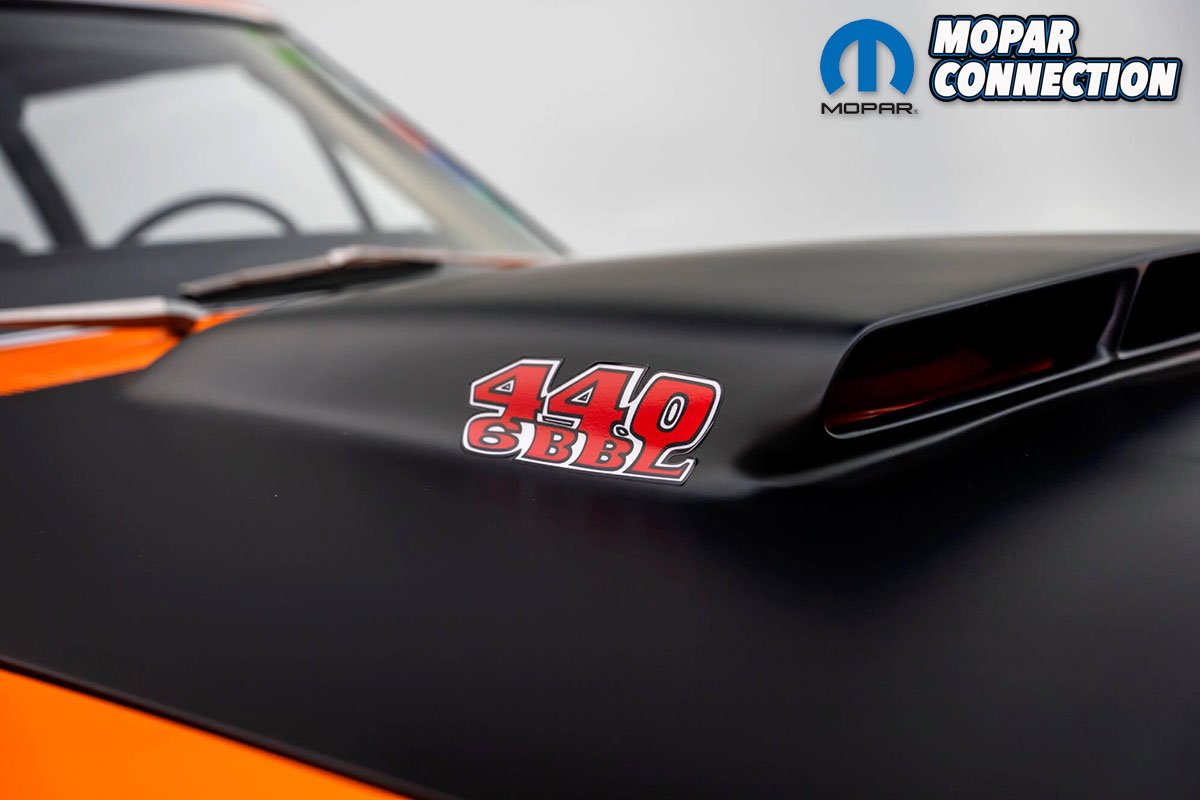 Painted in Vitamin C Orange with a black bench seat interior, it features all of the typical A12 equipment such as the 390 horsepower 440-6 Barrel engine (three Holley 2bbls) under the fiberglass lift off hood, 15×6” black steel wheels, Redline tires and 4.10 geared Dana 60 rear differential. Of course, it also has the legendary Beep Beep horn.