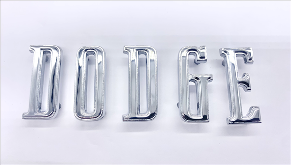 1967-1968 Dodge Dart Hood Letter Set (Part #VC852):These new reproduction DODGE hood letters are identical to the originals. Each letter is die-cast, and chrome plated as original. Mounting hardware included. Priced at $102.93 USD.